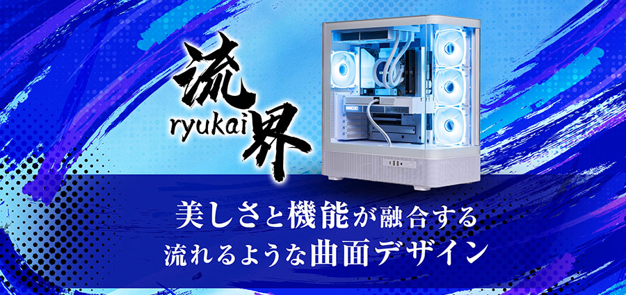 流界は、曲面ガラスのデザイン性と安定した性能を両立した、「魅せるゲーミングPC」を求める人向けのモデルです。