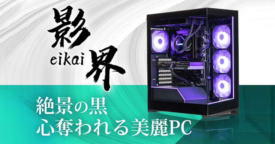 STORMの「影界」は、黒で統一された高級感あるデザインとハイエンドパーツ構成が特徴のゲーミングPCです。